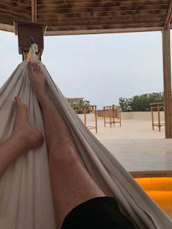 Rooftop Hängematte, super bequem und nach der Saune mit Sonnenuntergang sehr zu empfehlen