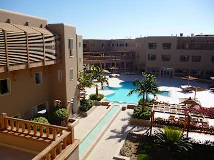 Blick auf den Innenhof mit Pool
