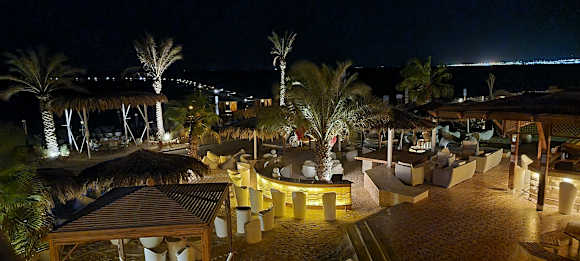 Die Strandbar abends schick beleuchtet