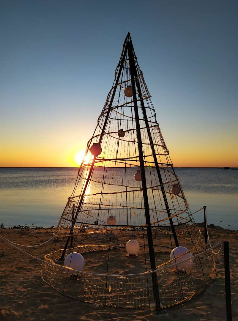 Weihnachtsbaum auf Breakers-Art am Strand. Es ist toll, mit wie viel Kreativität hier gearbeitet wird. Immer wieder gibt es etwas Neues zu entdecken.