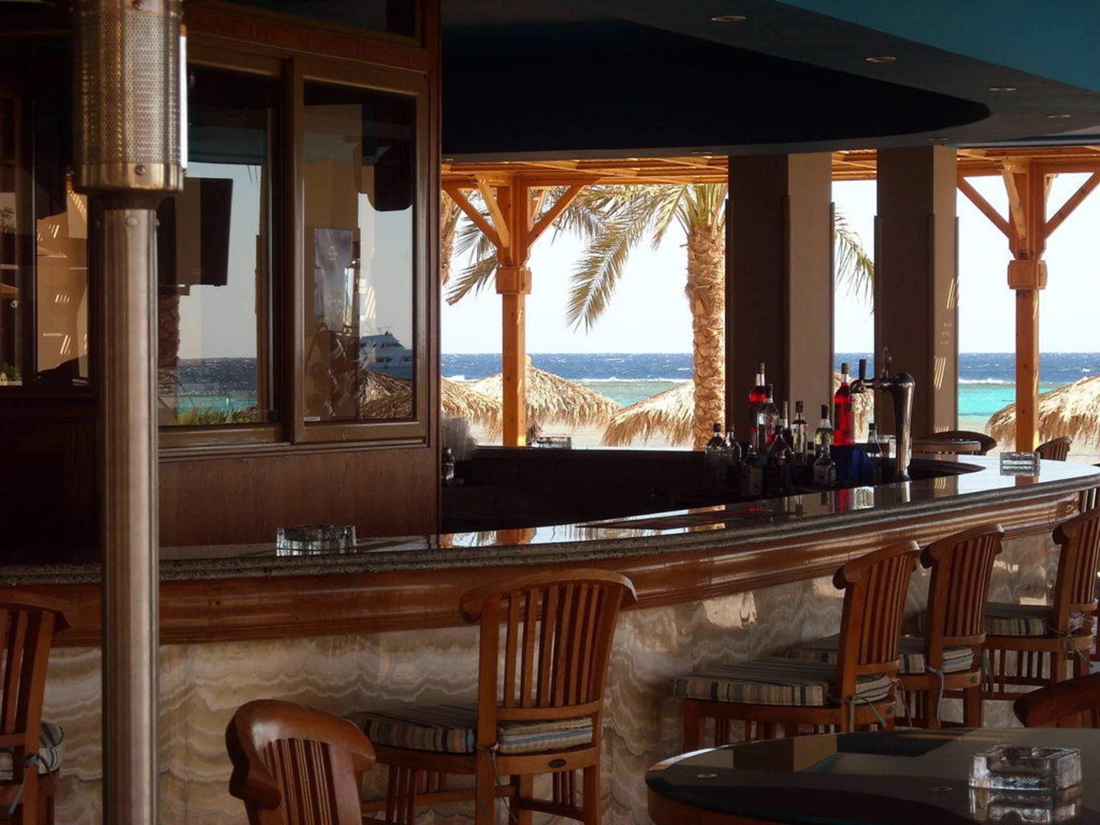 Blick durch die Bar zum Wasser