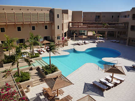 Blick auf den Innenhof mit Pool