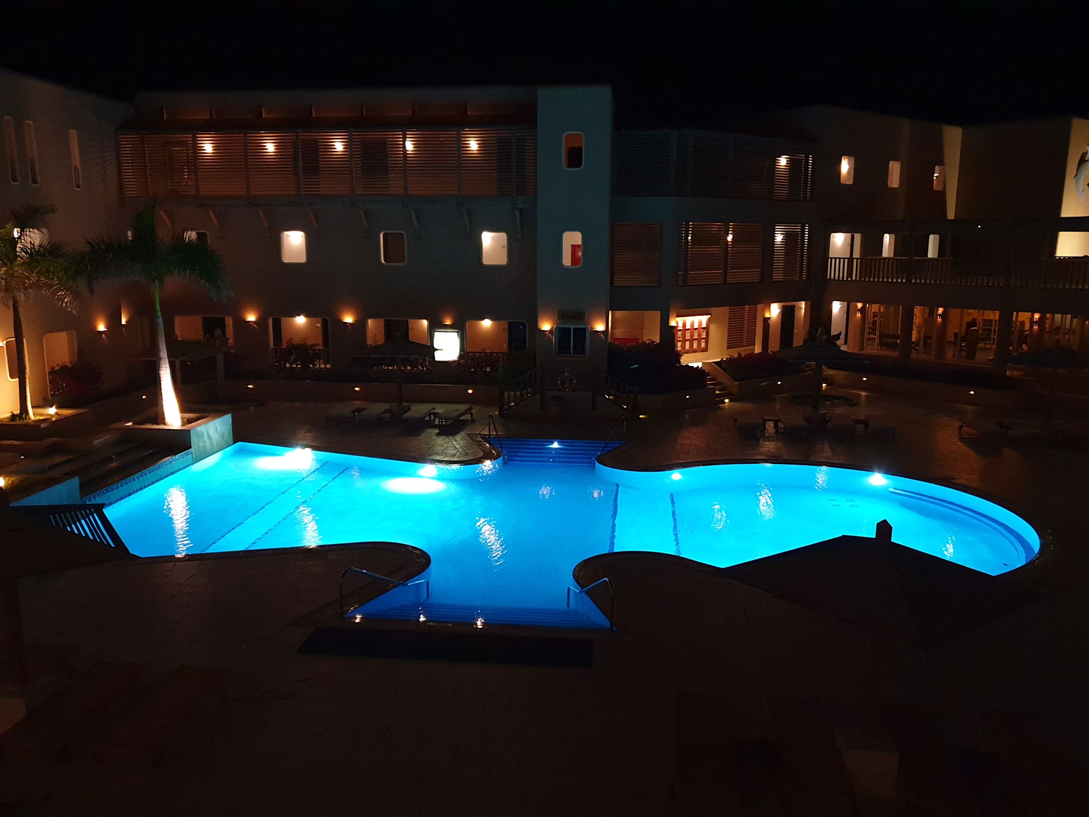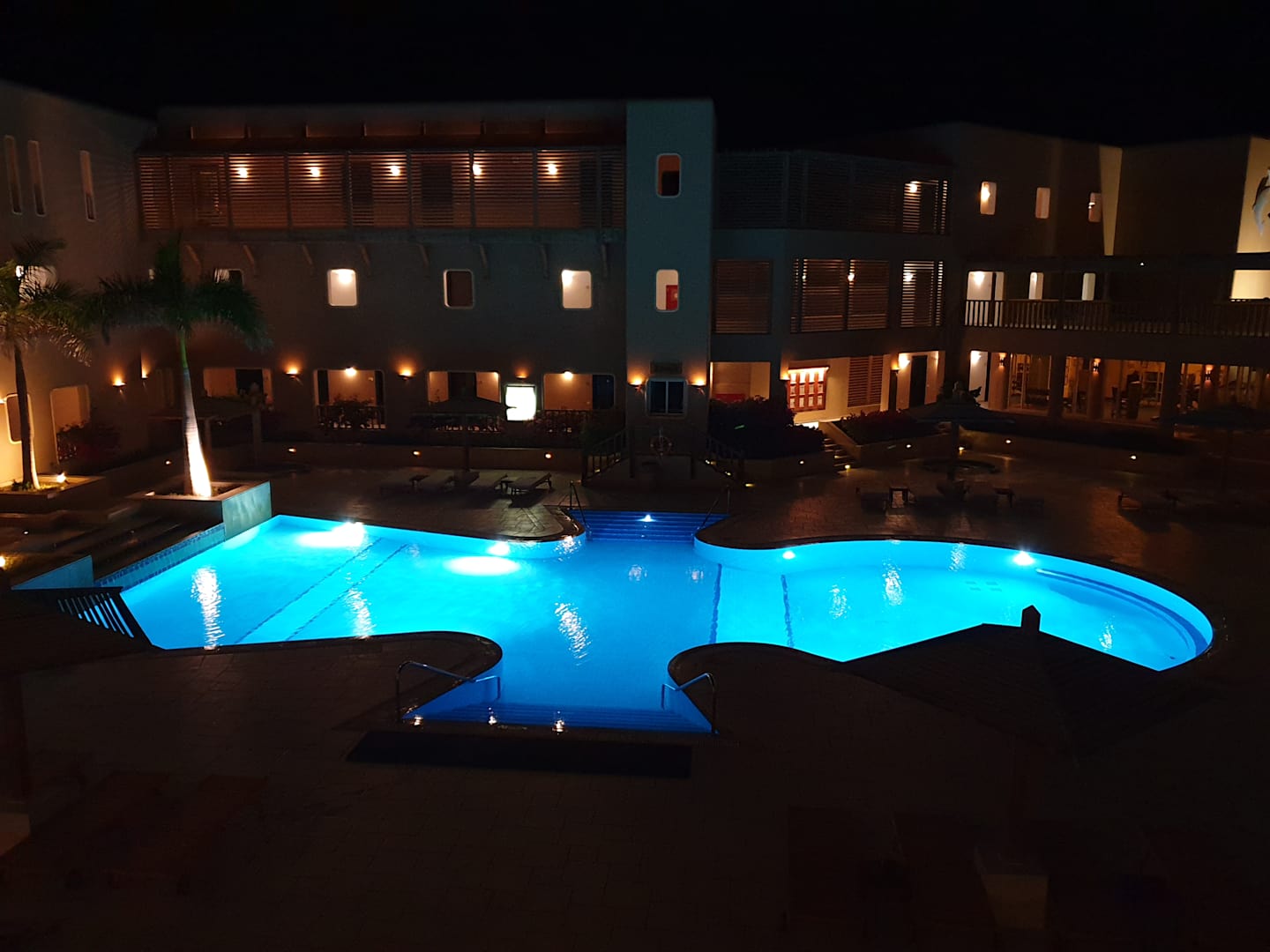 Der Pool im Innenhof des Breakers in Henkelkreuz Form.