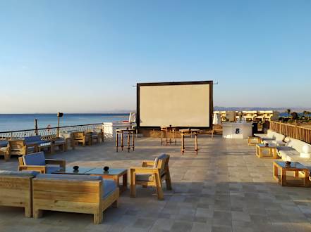 Auf dieser Dachterasse gibt es im Sommer Open-Air Kino.