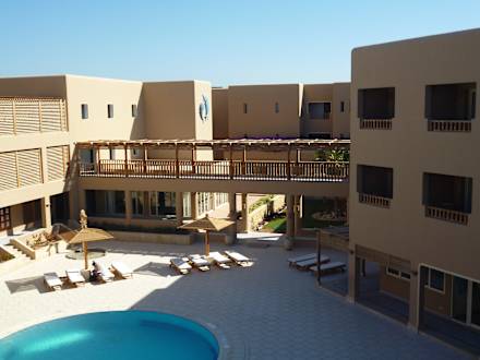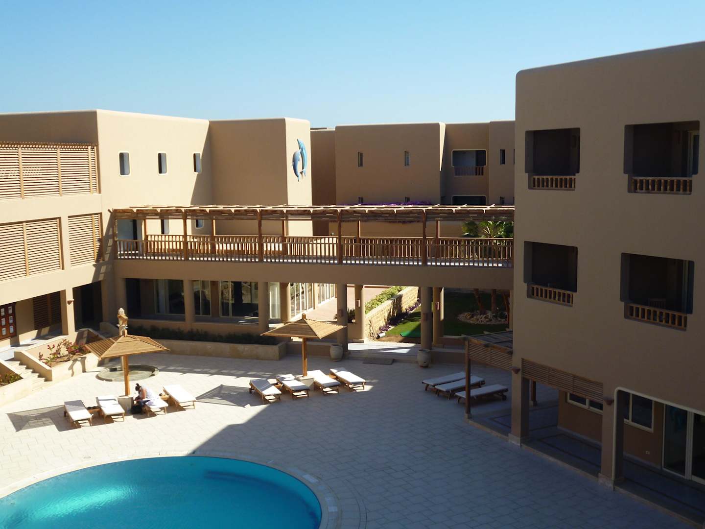Blick auf den Innenhof mit Pool