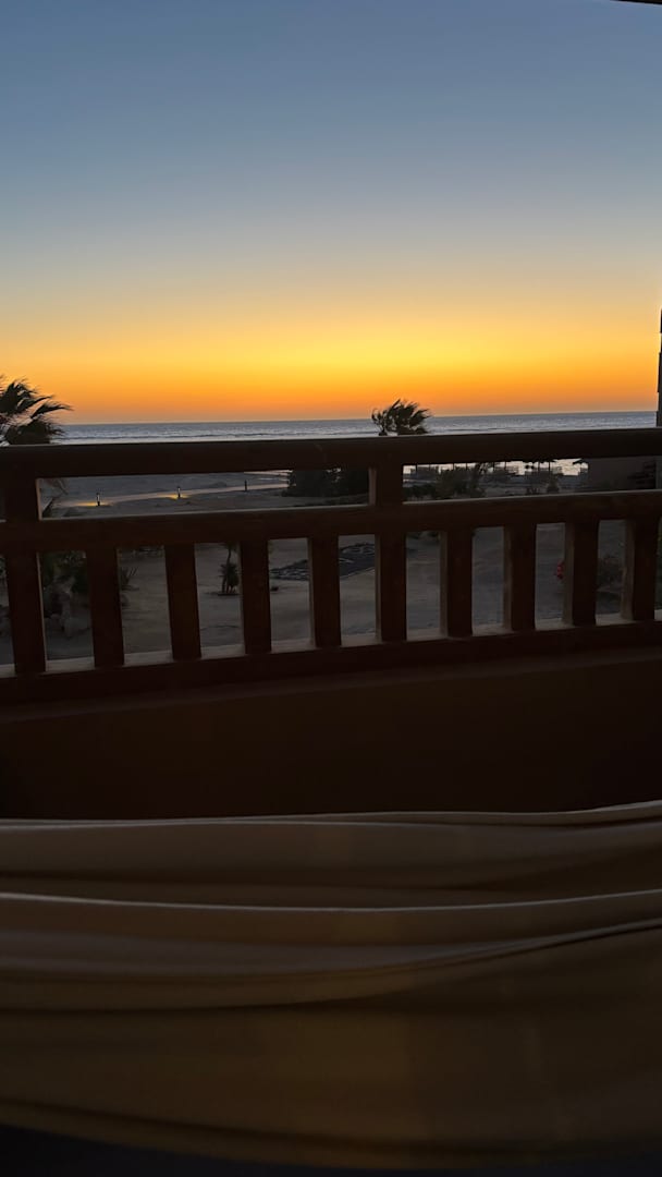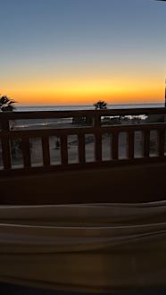 Der Blick vom Balkon auf das Meer und den Sonnenaufgang