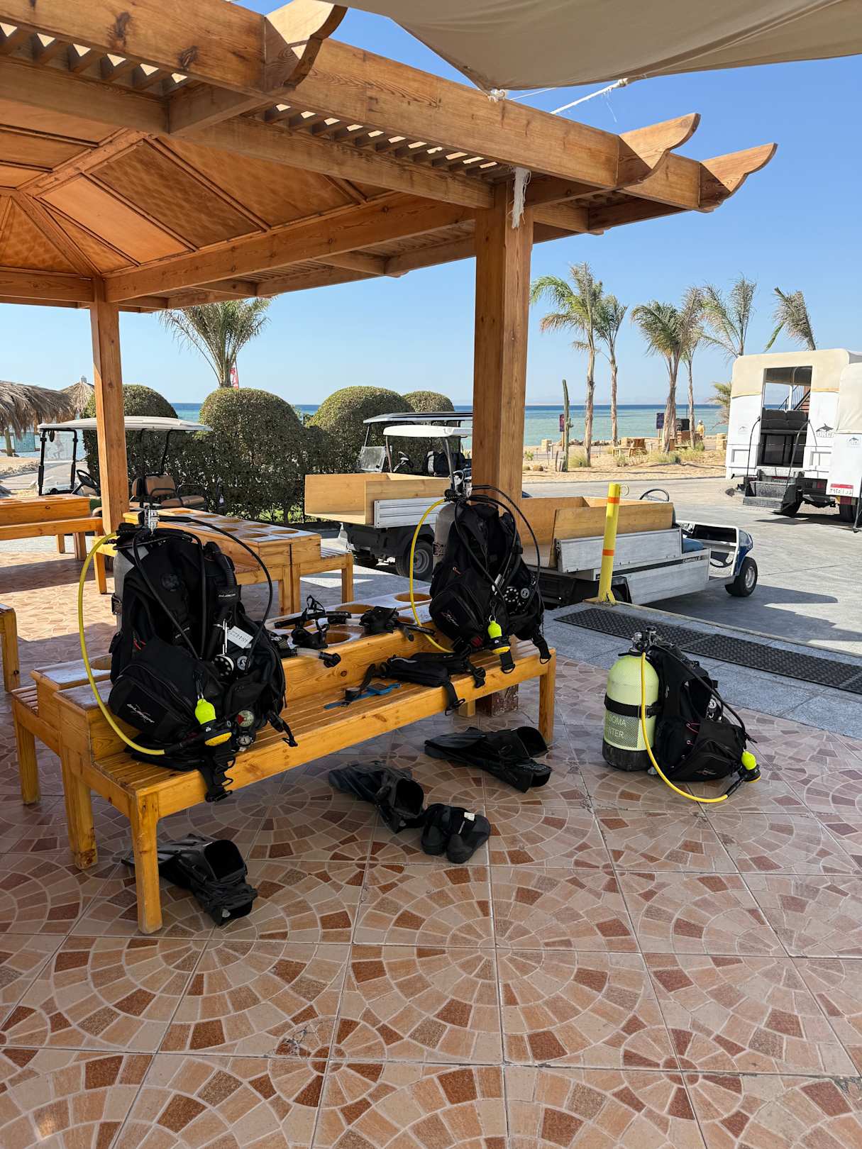 Fertigmachen zum Tauchgang um 8 Uhr - wir waren die Einzigen :-)