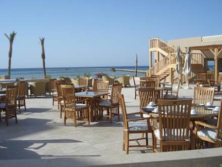 herrlicher Ausblick von der Terrasse des Restaurants auf das rote Meer.