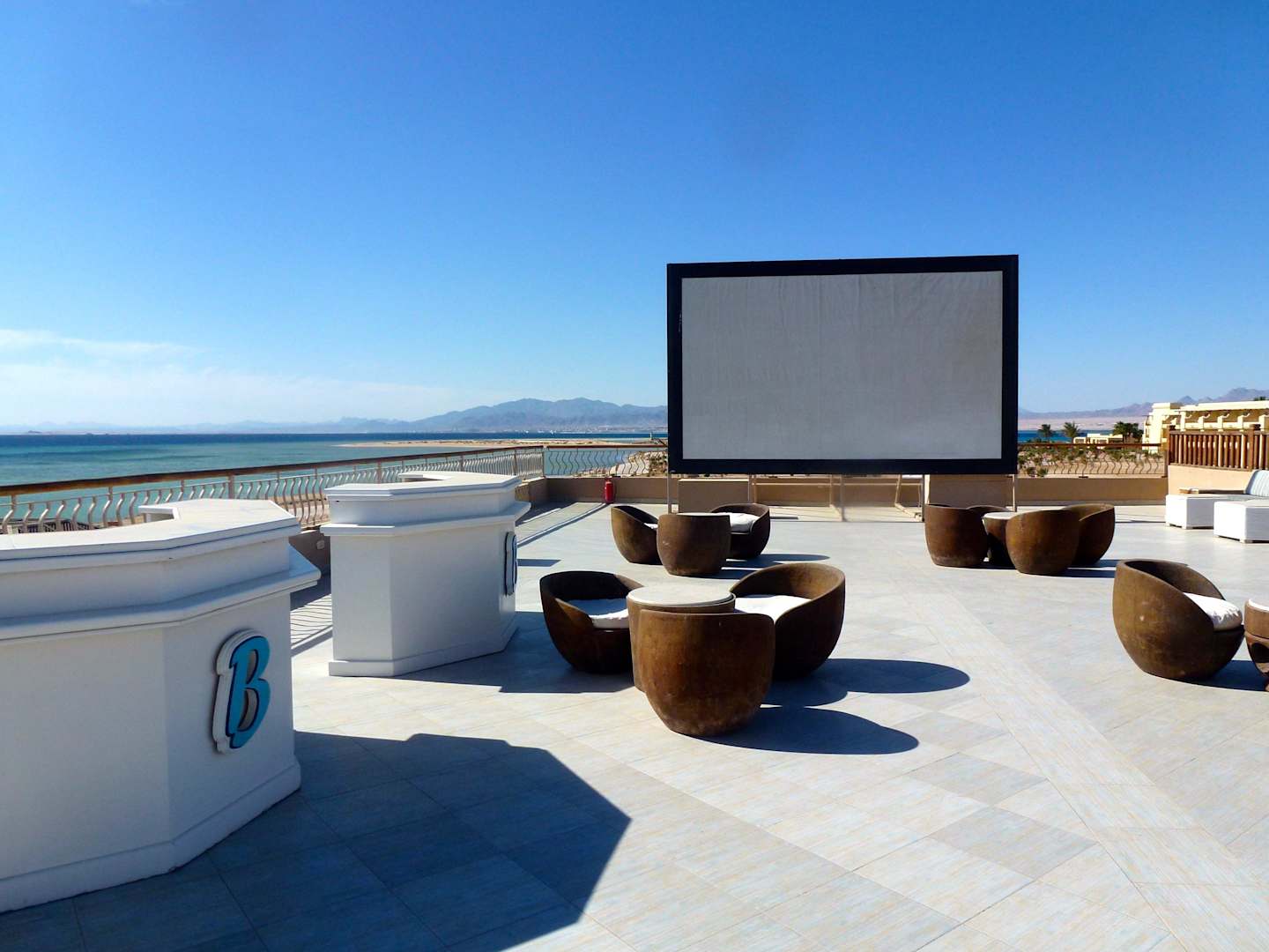 Dachterrasse mit Großbildleinwand vom Hotel
