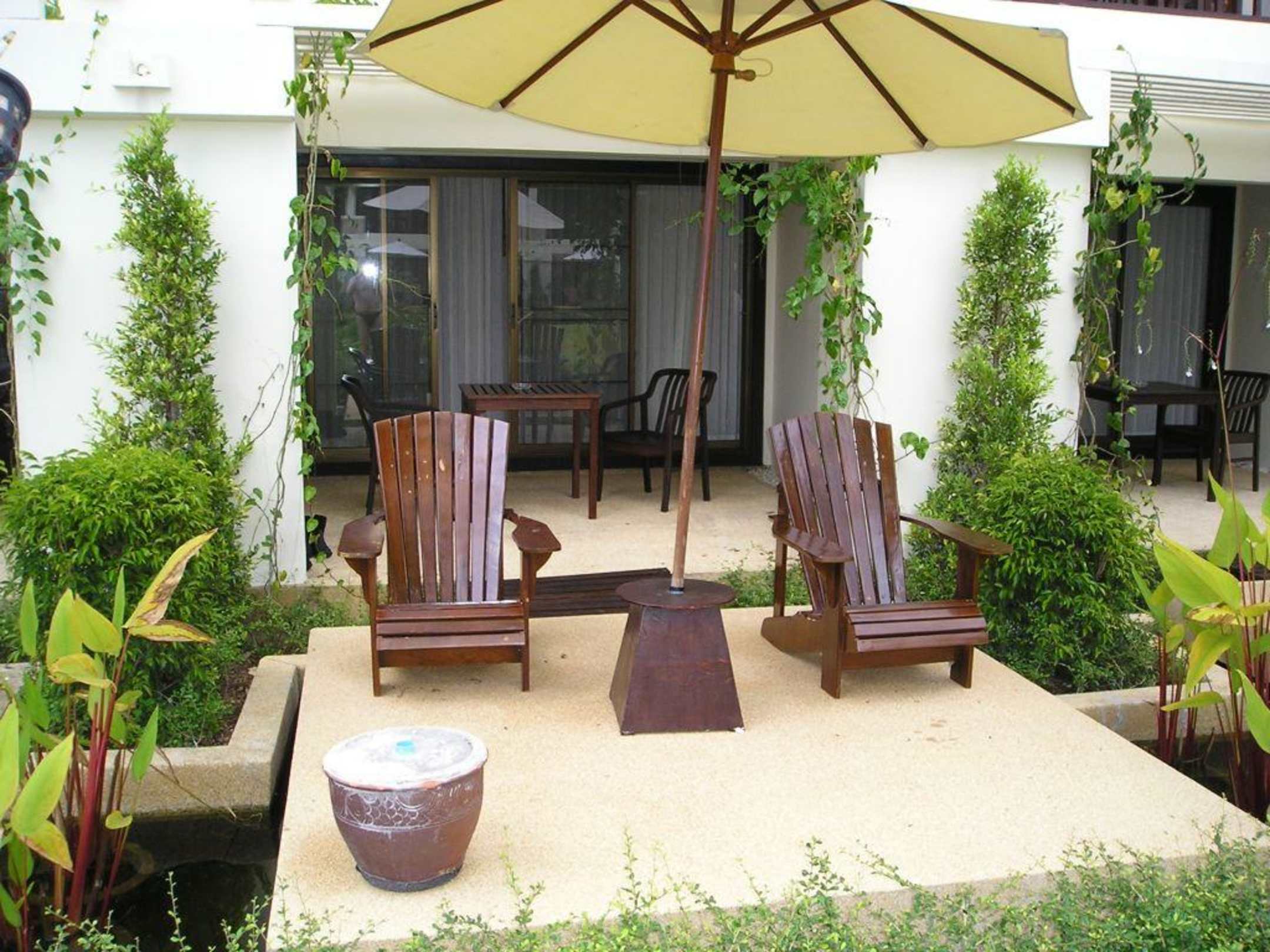 Die Terasse und Relaxinsel bei den Erdgeschosszimmern