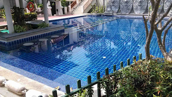 Blick auf mittleren Pool mit "Poolbar"