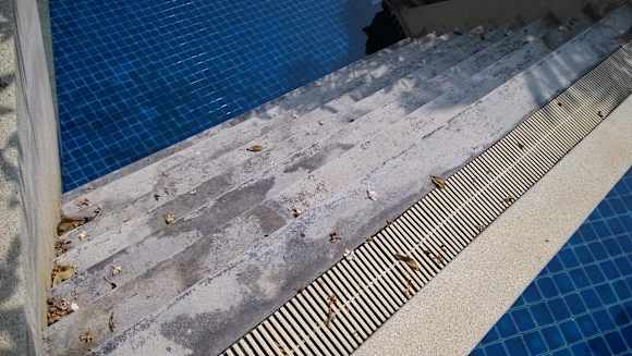 Wasserstufen der PoolanlageDie Poolanlage wird kaum gepflegt, keine Wasserfontainen, keine Wasserstufen (wie auf den Anbieterbildern zu sehen. NIEMAND nutzt den Pool, da ungepflegt und nicht in Strandnähe, Poolbar nicht bewirtschaftet und geschlossen