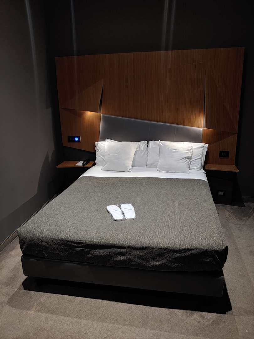 Doppelbett, links und rechts bereits die Wand