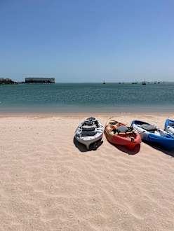 Hotelstrand mit Restaurant Marsa links hinten