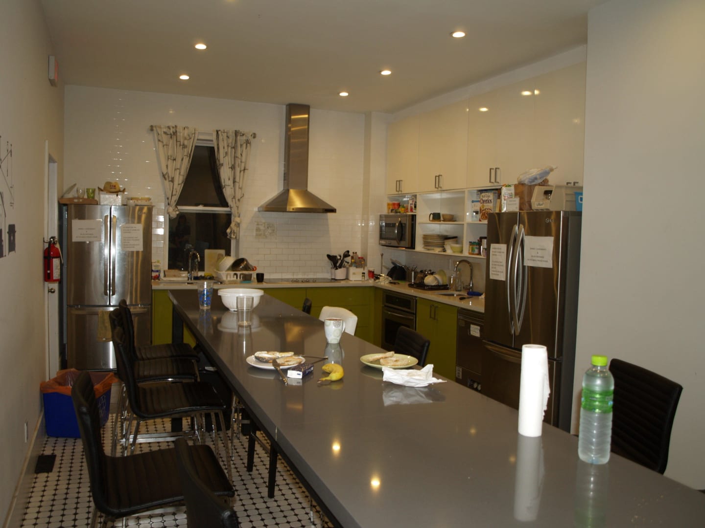 KücheWasserspender, Herd, Mikrowelle, Wasserkocher, 2 Kühlschränke, Vorratsschränke, ausreichend Geschirr/Besteck