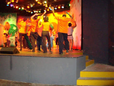 Animadoresy público bailando juntos en el escenario