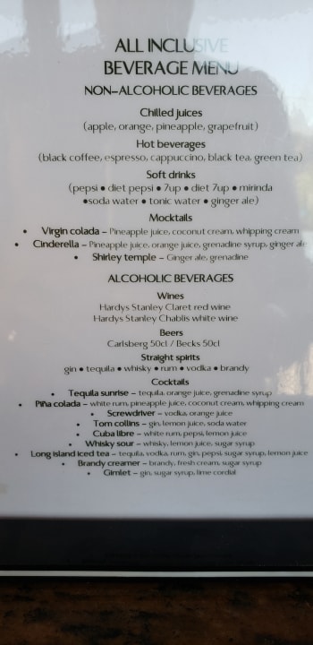 Lächerliche All In Getränke Karte