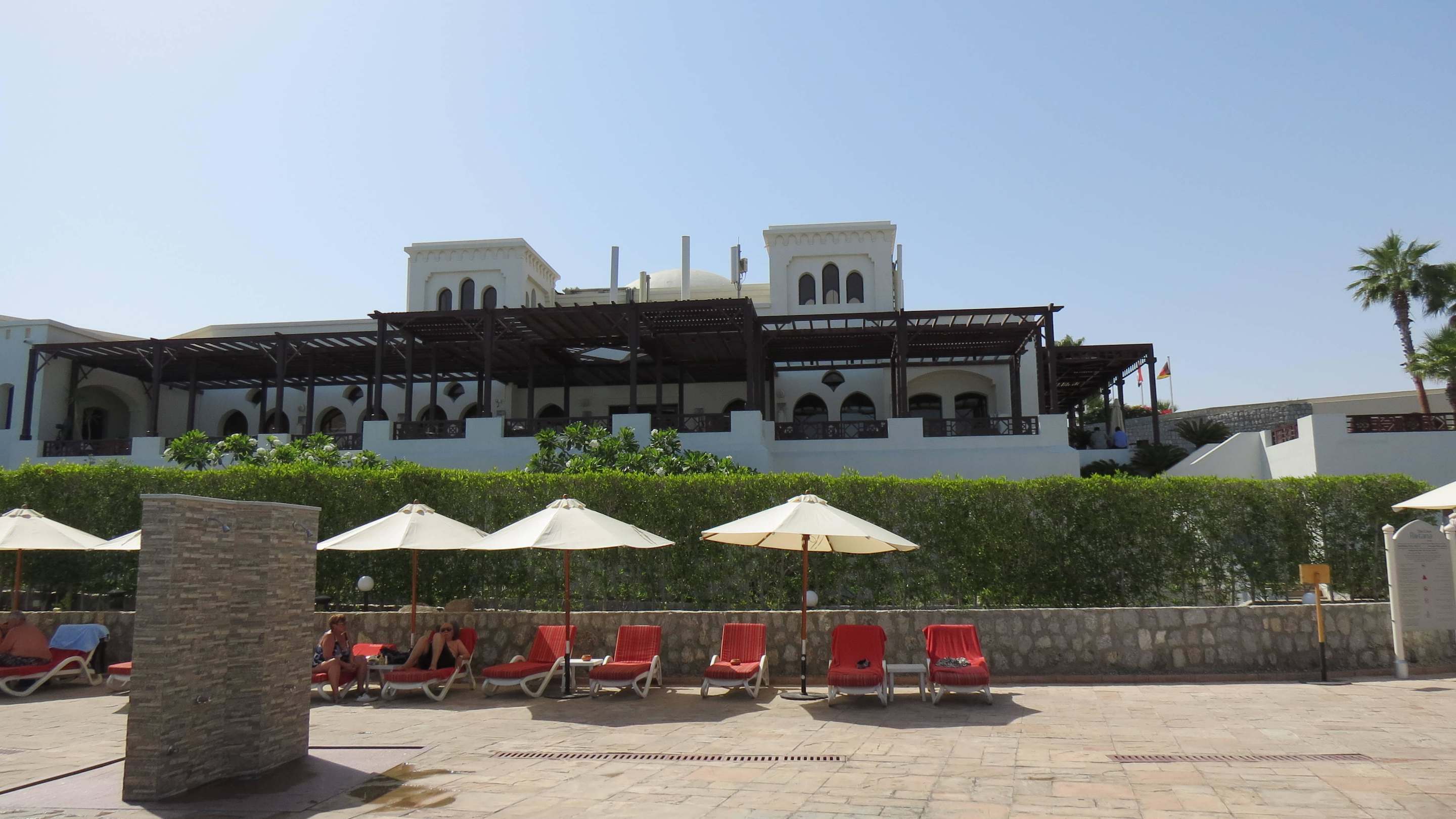 Blick vom Pool zur Lobby