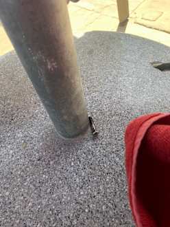 Verrostete Schrauben direkt am Sonnenschirm