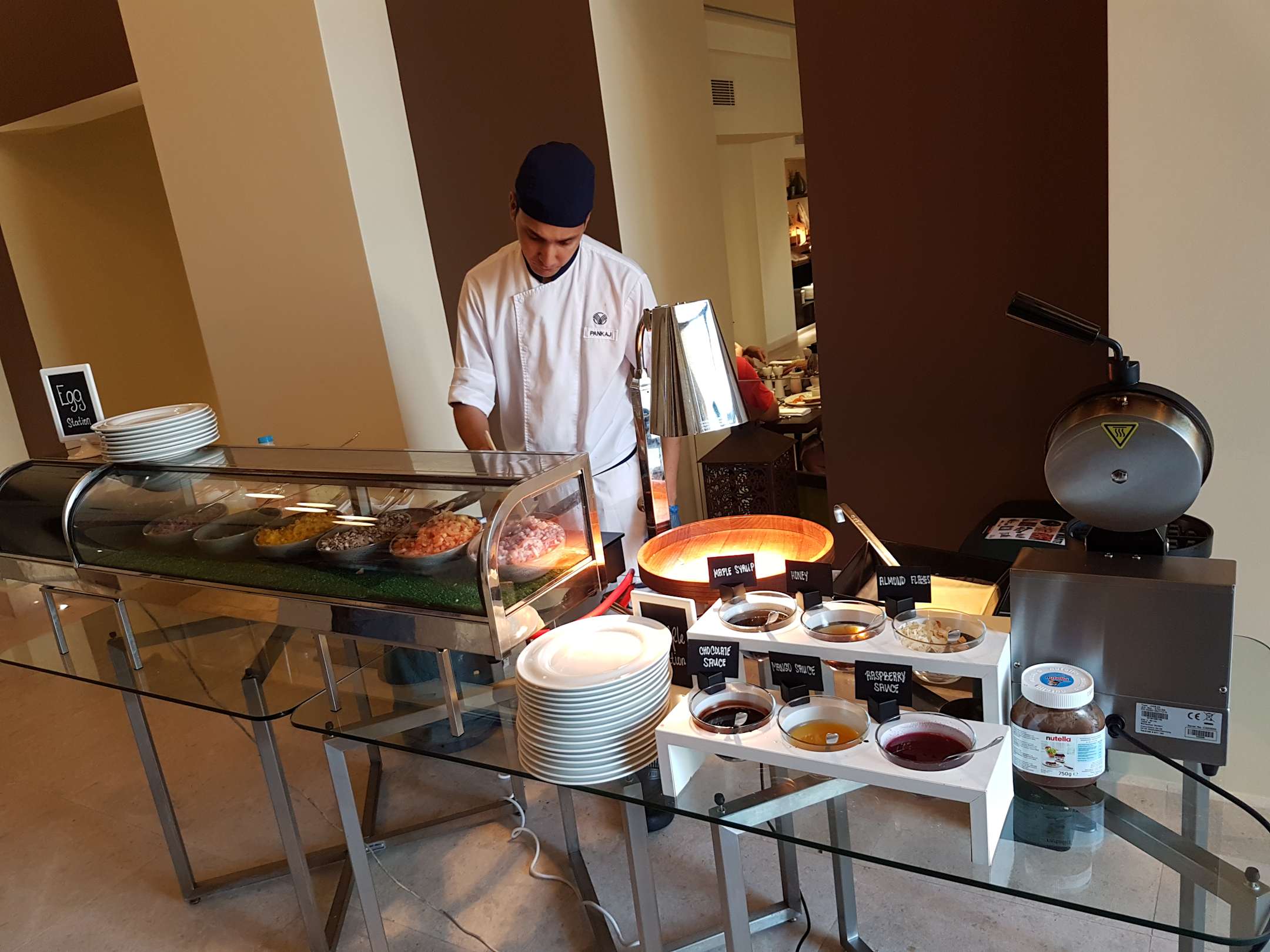 Frühstück: Station mit frischem Omlett und Waffeln. Sehr lecker :)