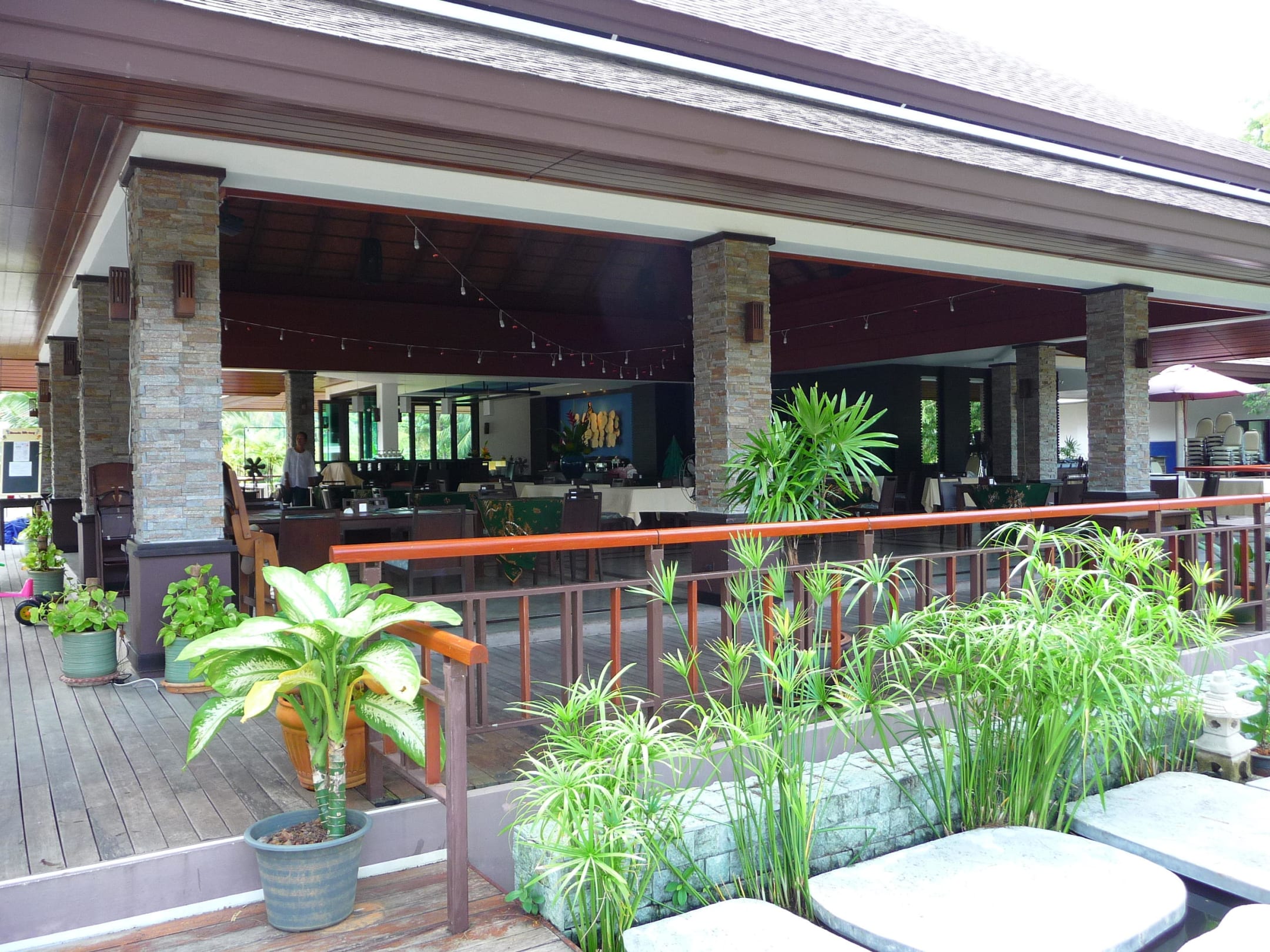 Das Restaurant ist der zentrale Mittelpunkt der recht überschaubaren Hotelanlage.