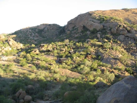 Blick auf die Lodge am Abend