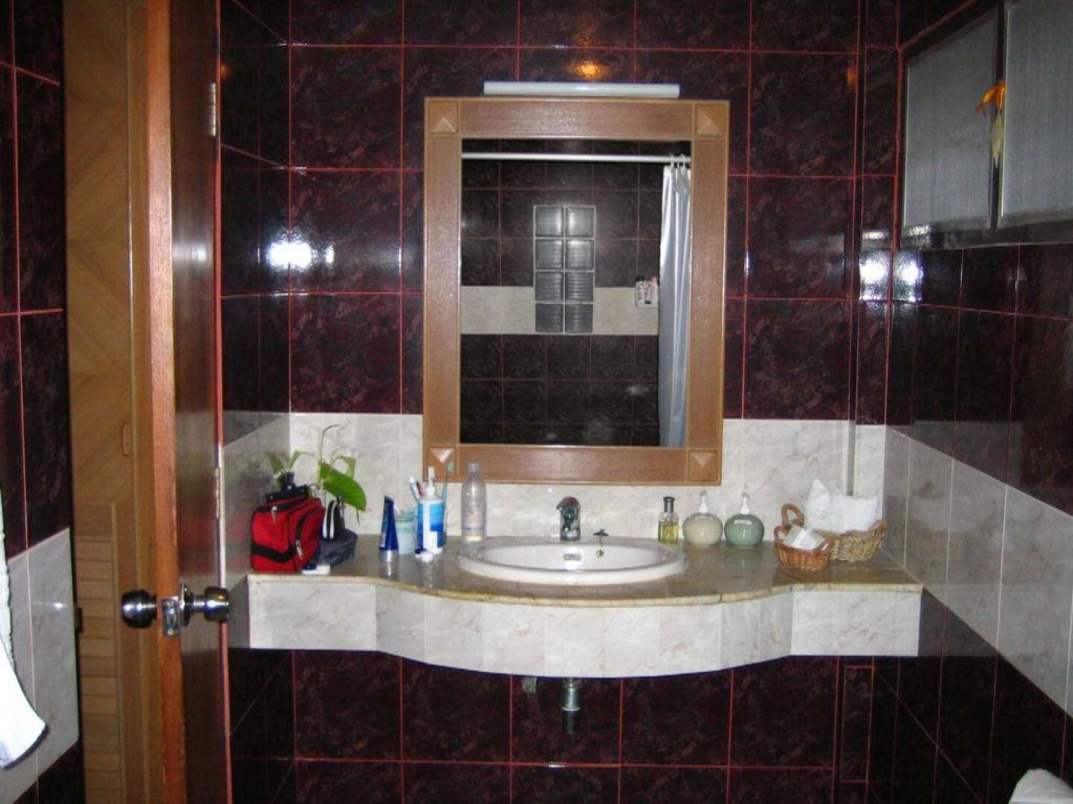 Bad unseres Superiorbungalow.Geisterfoto.Niemand im Spiegel zu sehen.