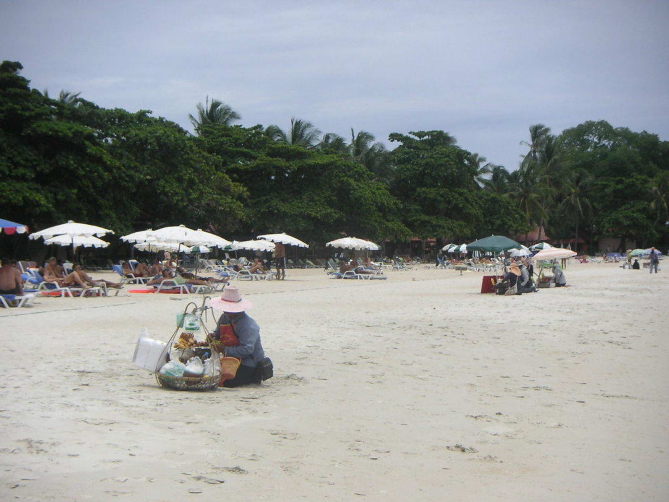 StrandThais zauberten Snacks am Strand, Satay-Spieße, Mais, Obst etc.