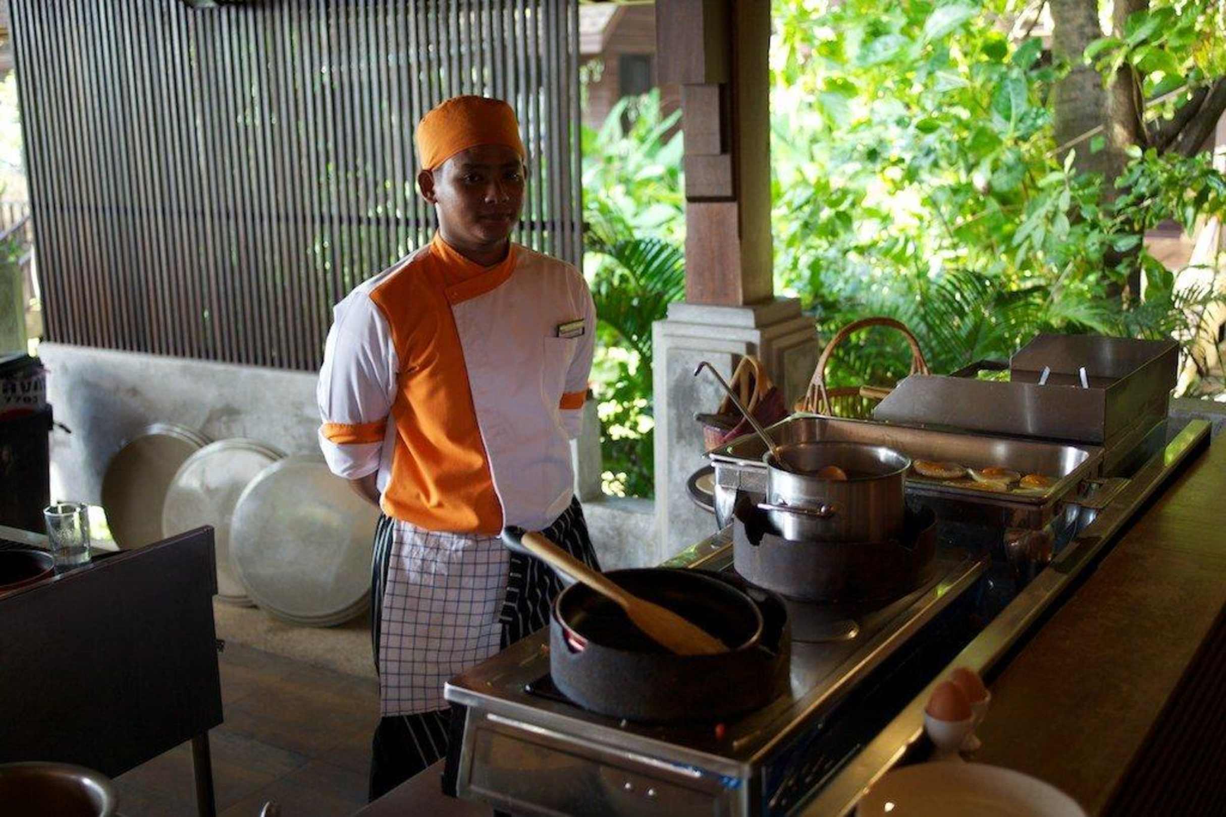 Eierstation am Frühstücksbuffet