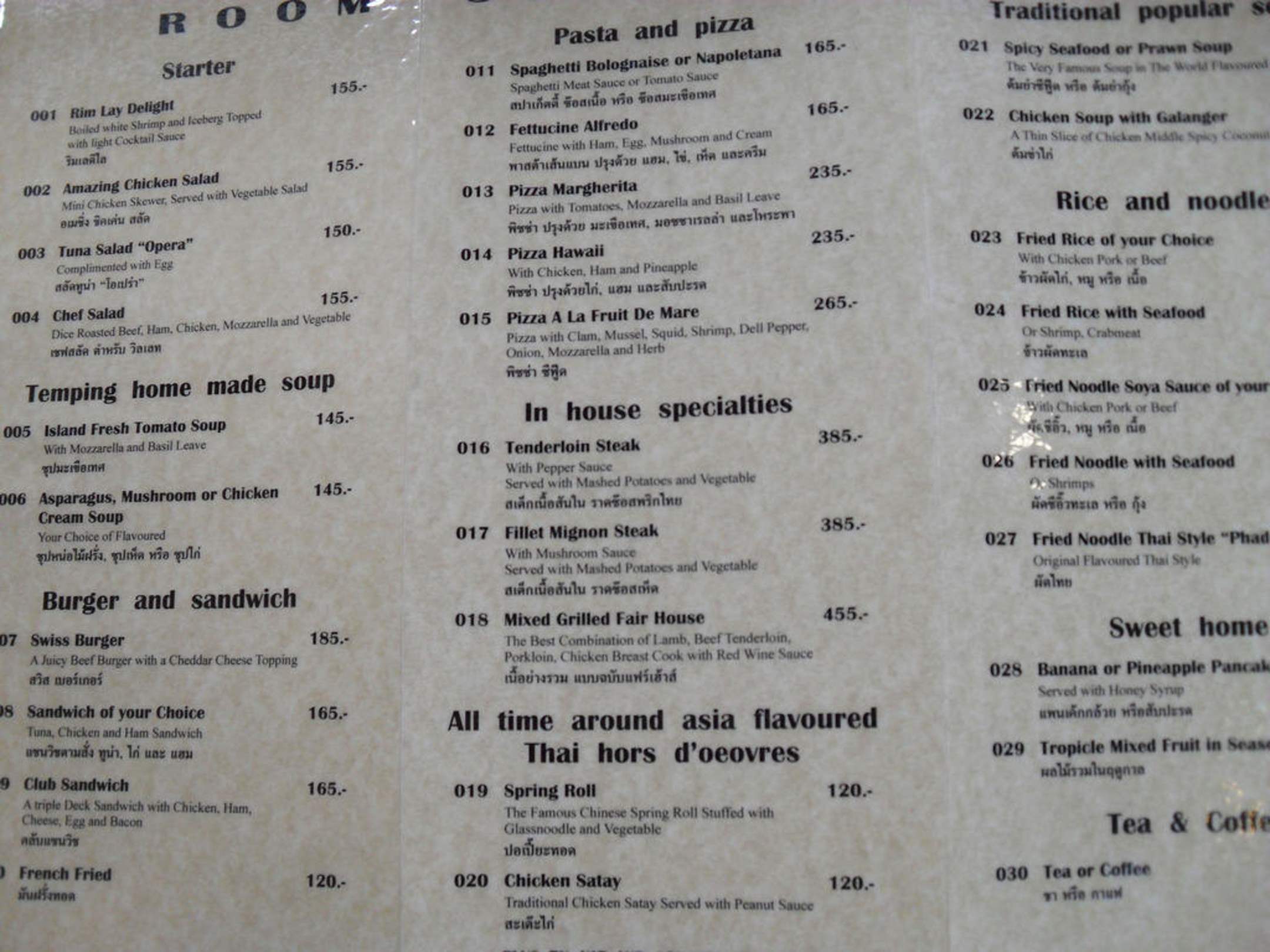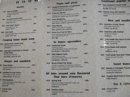 Speisekarte Restaurant