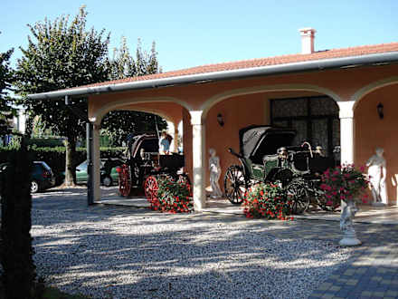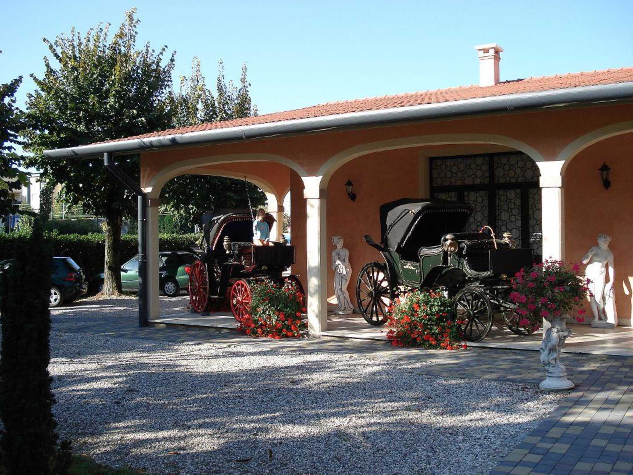 Villa Foscarini / ehemaliges Lagerhaus?Villa Foscarini. Ehemaliges Lagerhaus / Stall? Jetzt zu Hotelzimmer umgebaut. Davor historische Kutschen.