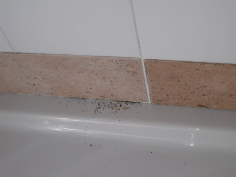 Schmutzpartikel in und an der Duschwanne im ersten Bungalow