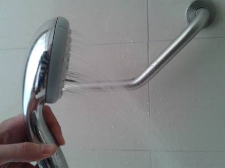 The strong water pressure in the shower