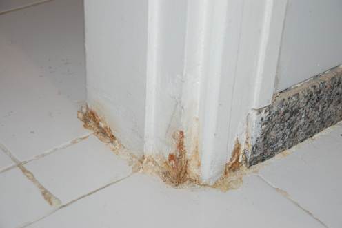 Schimmel an Türrahmen, schmutzige Fließen
