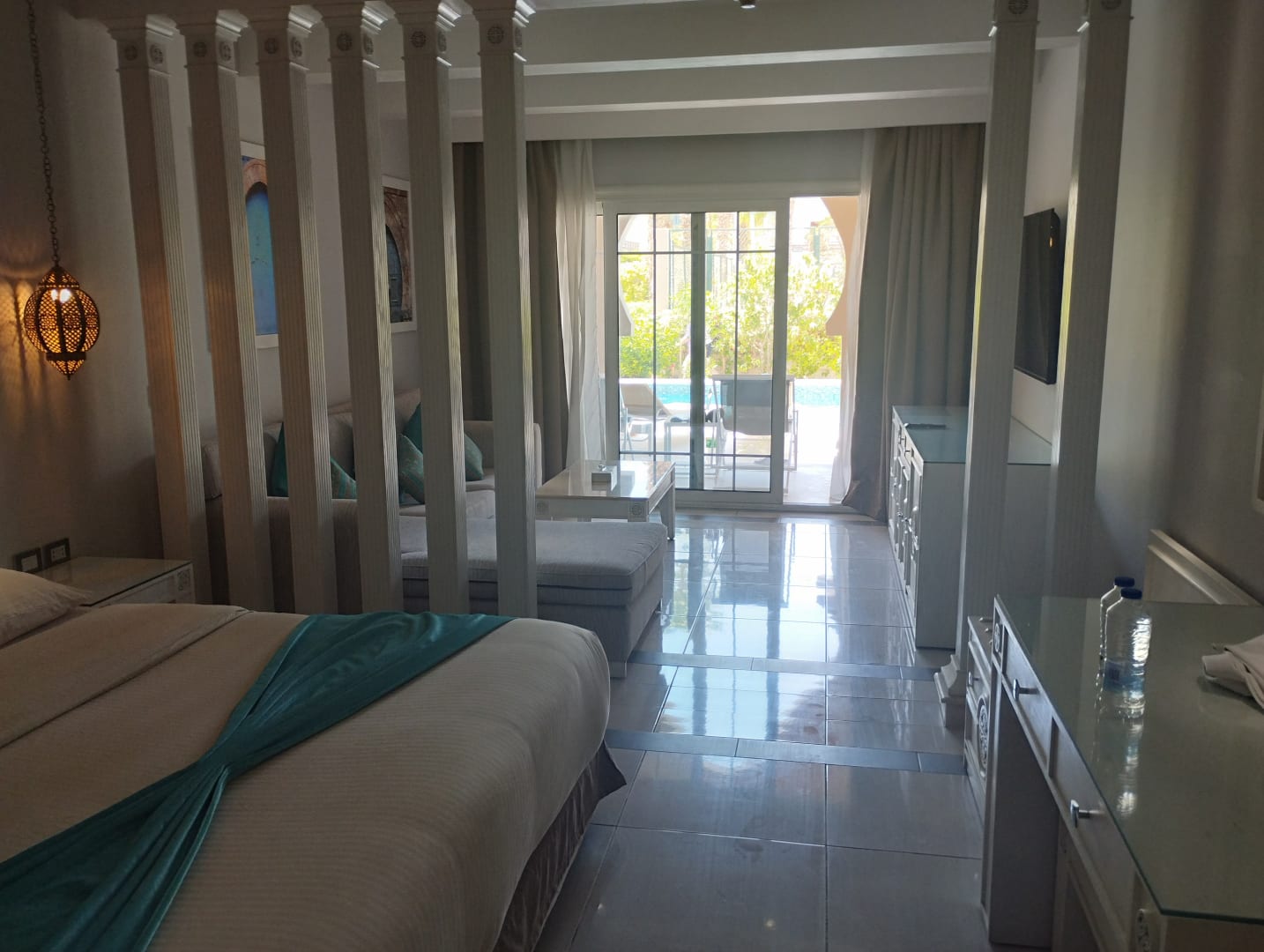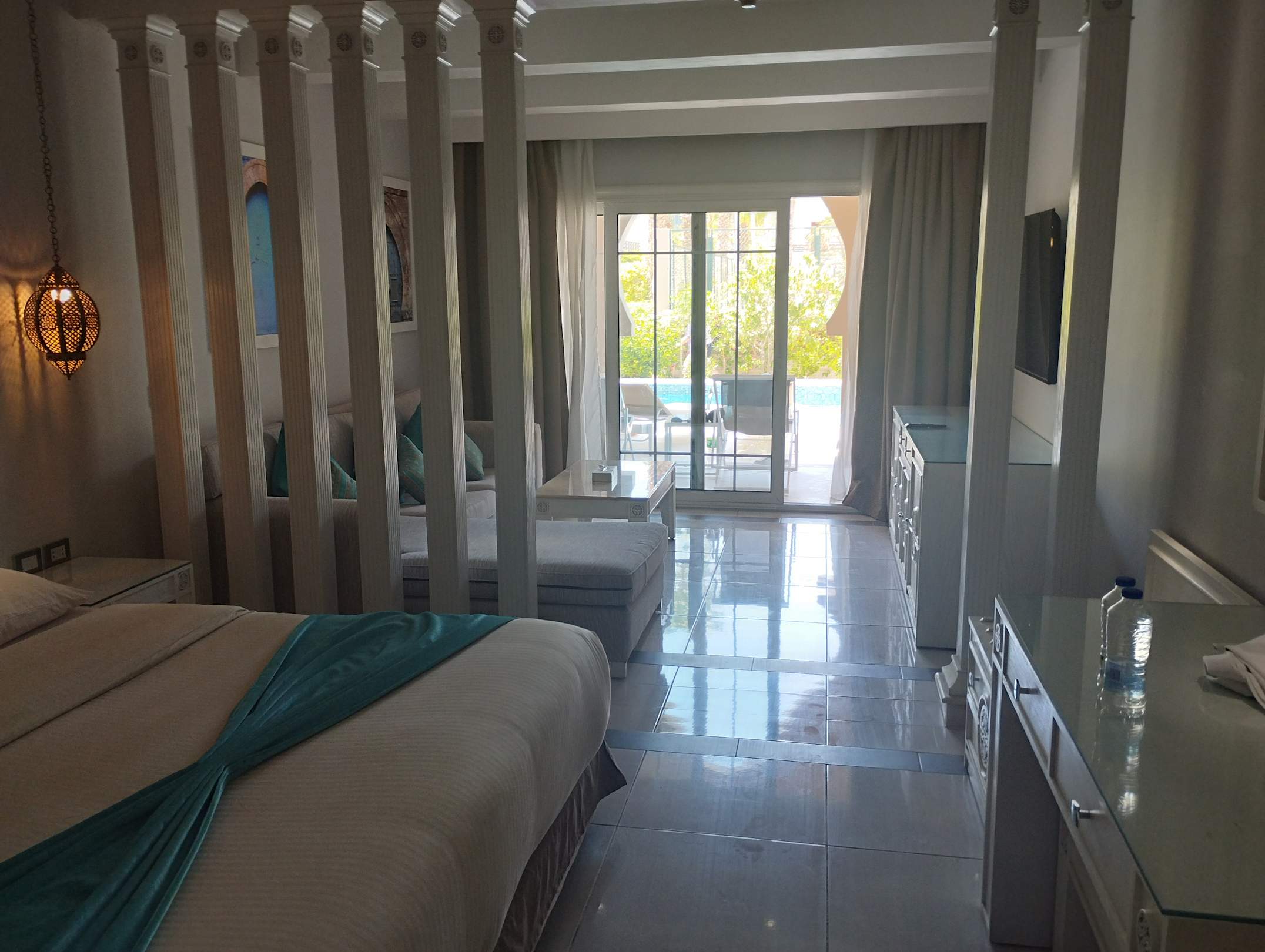 Mein Zimmer mit Blick vom Eingang zum swim Up Pool zugang