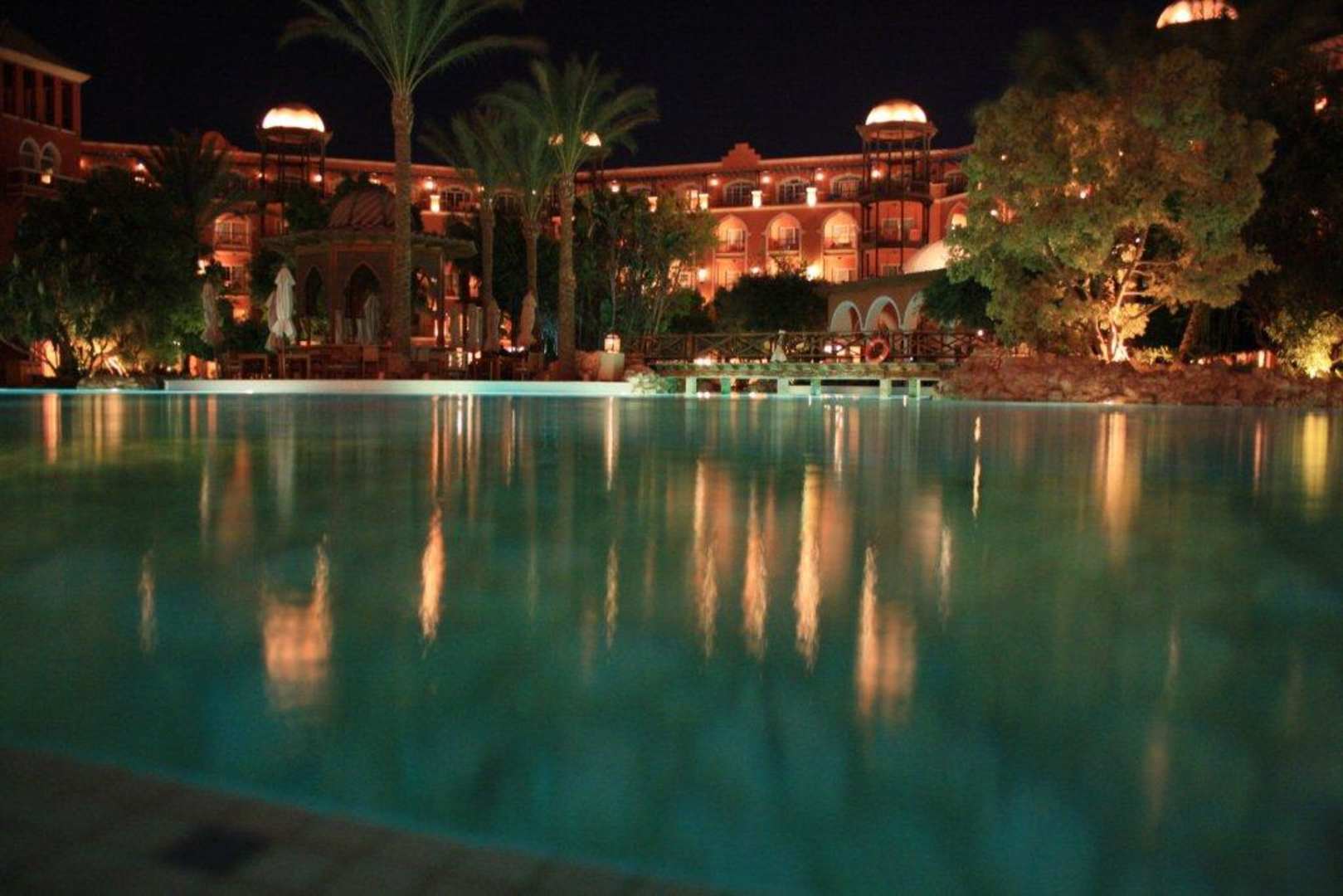 Poolanlage bei Nacht
