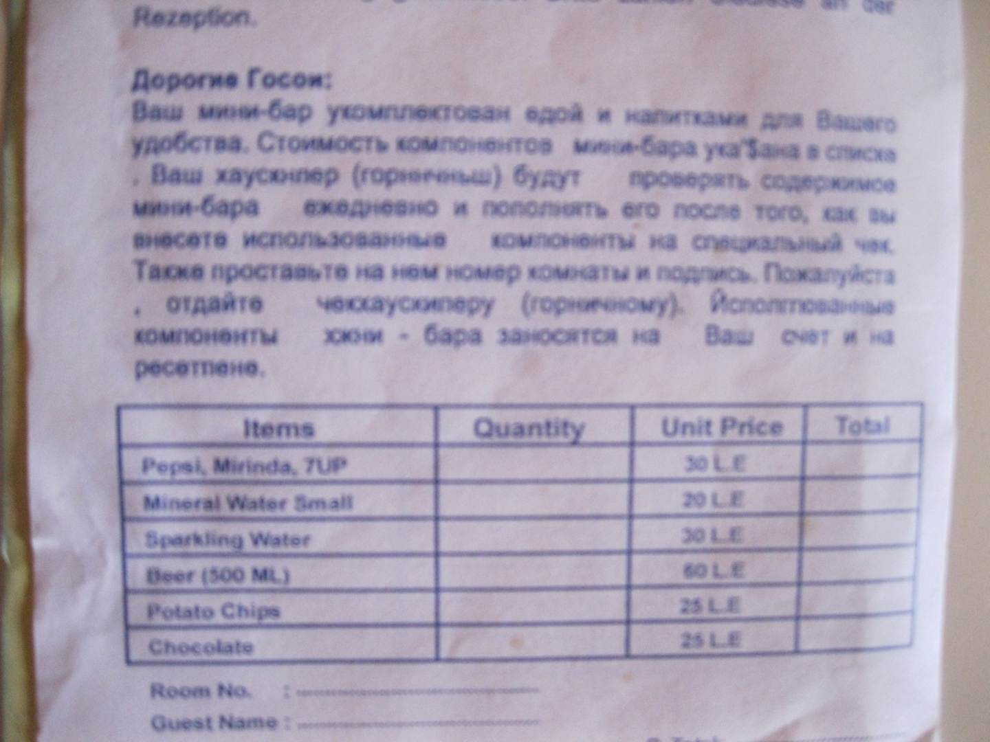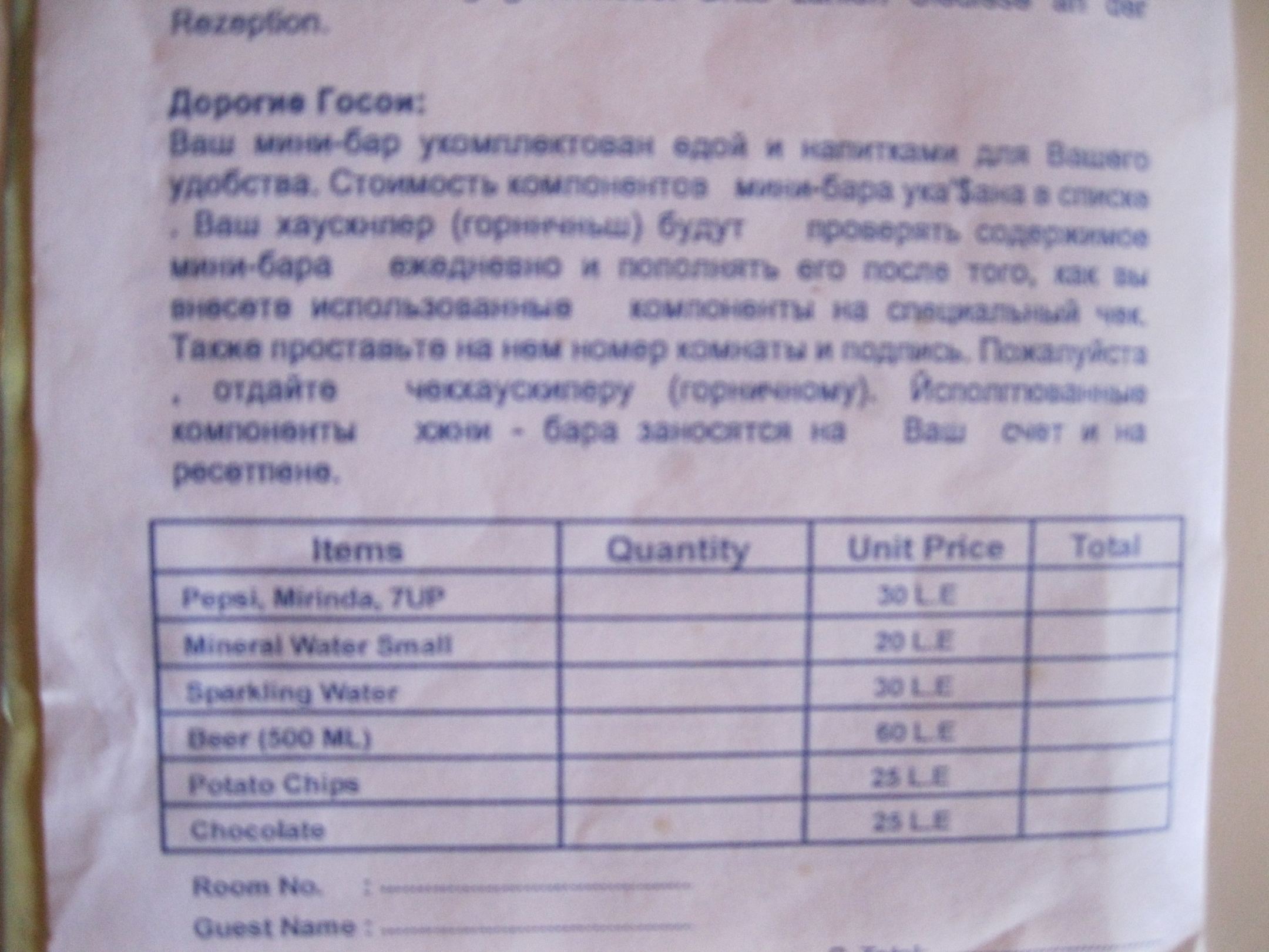 Preise von der Minibar
