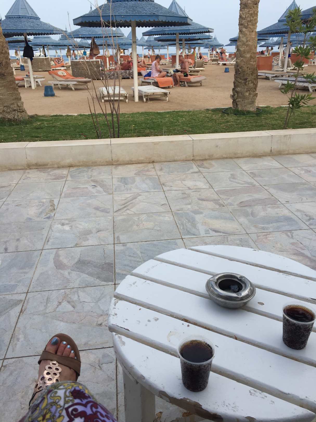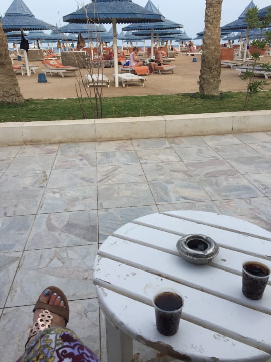 Verdreckter kleiner Tisch am Strand. Gereinigt wurde hier nur selten.