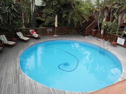 Inmitten der Gartenanlage liegt der Pool