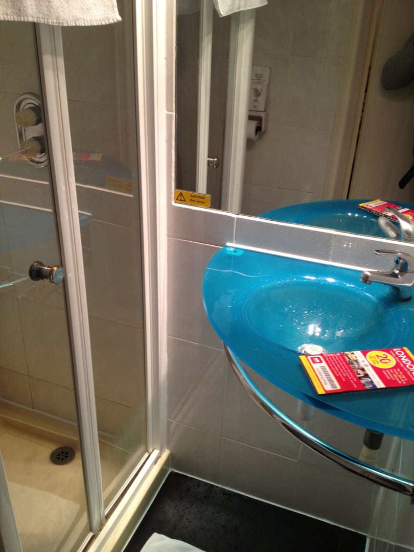 Die Dusche und das kleine Waschbecken.