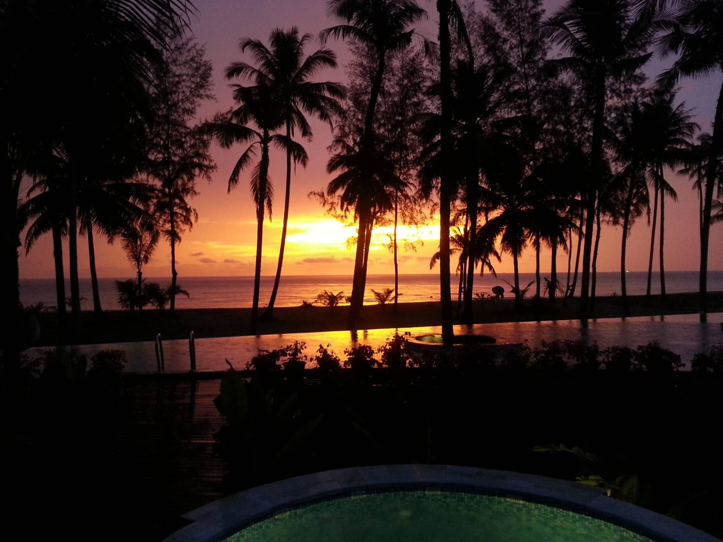 Sonnenuntergang am Hotel