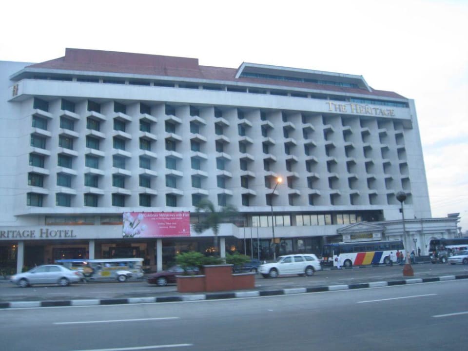 Heritage von vornHotel direkt an Hauptstraße, sehr dreckig, sehr laut, am Eingang immer Security, ist in Manila scheinbar auch nötig