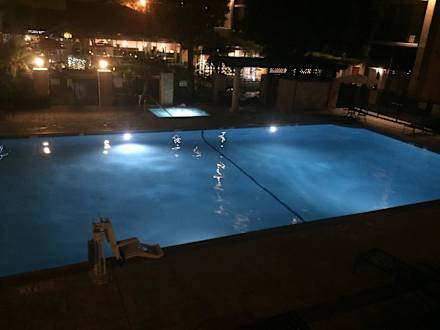 Blick vom Zimmer auf den Pool