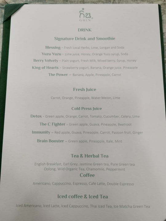 Getränkekarte zum Frühstück
