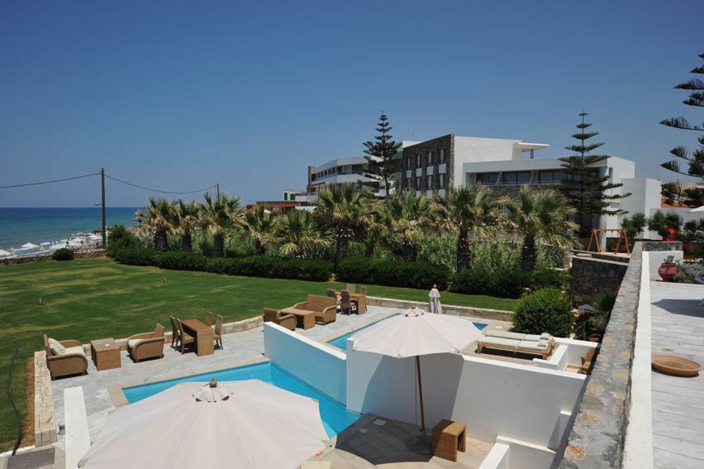 Im Vordergrund noch die Pools der privaten Suiten zu sehen