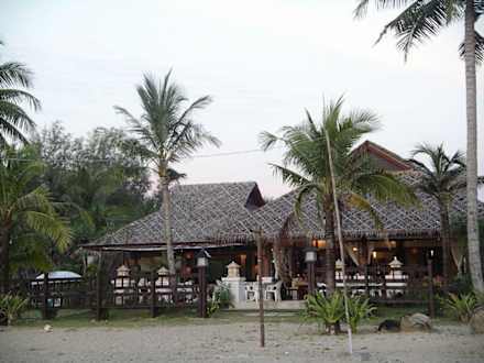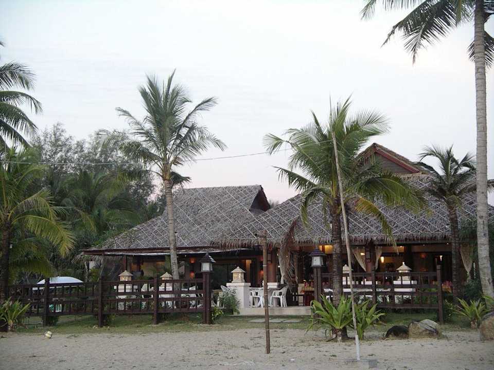 Blick vom Strand auf das offene Restaurant