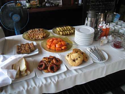 Seccion buffet del desayuno del hotel.