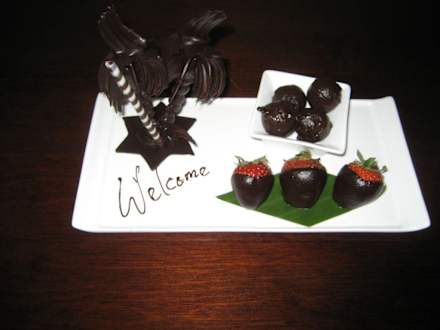 Willkommensgruß auf dem Zimmer.