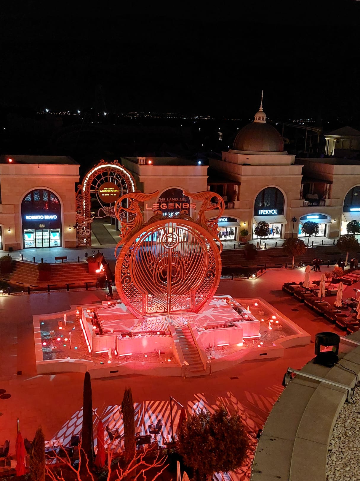 Ausblick aus unserem Zimmer bei Nacht ... alles ist beleuchtet und strahlt in wechselnden Farben.