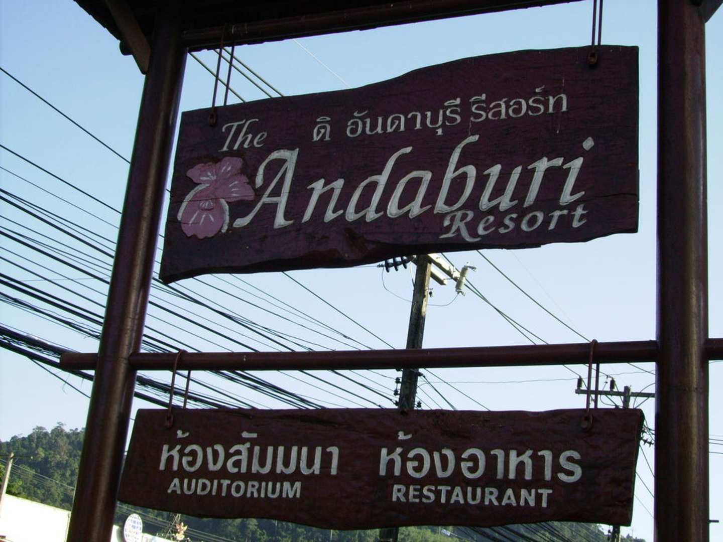 Neben diesem Schild führt eine kleine Seitenstraße/Gasse zum hoteleingang